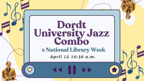 Join us for a time of music, sweet treats and library fun with the Dordt University Jazz Combo! We are excited to invite this 6 member ensemble of musicians from Dordt University to fill out library with music to celebrate the vibrancy of our library for National Library Week. Feel free to stay for the full hour, or come and go as your schedule allows. Treats will be provided by Oliva's bakery.